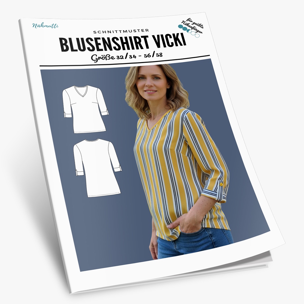 Das Schnittmuster Blusenshirt Vicki gibt es als Papierschnittmuster oder als E-Book (PDF).